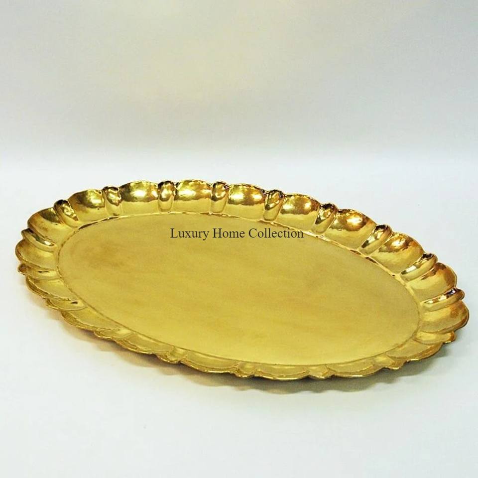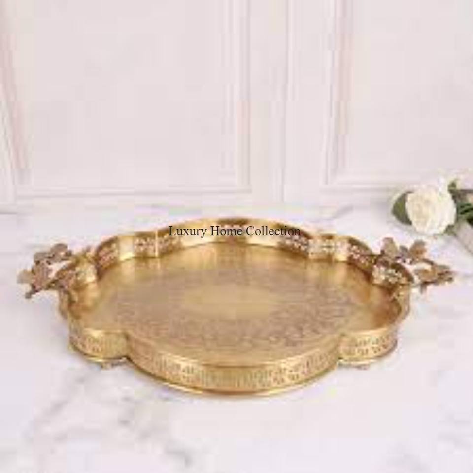 Bandeja de aspecto elegante de diseñador hecha a mano de Color dorado para servir utensilios de cocina de mesa hechos a mano bandeja de comida de diseño admirable