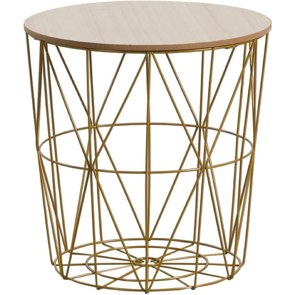 Marco de metal de color dorado y mesa auxiliar de café superior de madera Diseño moderno para su sala de estar o espacio de salón