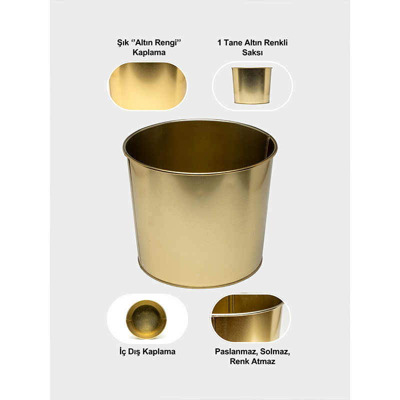 Cubeta de Metal Color Dorado / Maceta Decorativa para Flores – Uso en Interiores y Exteriores | Maceta de Metal Personalizable -