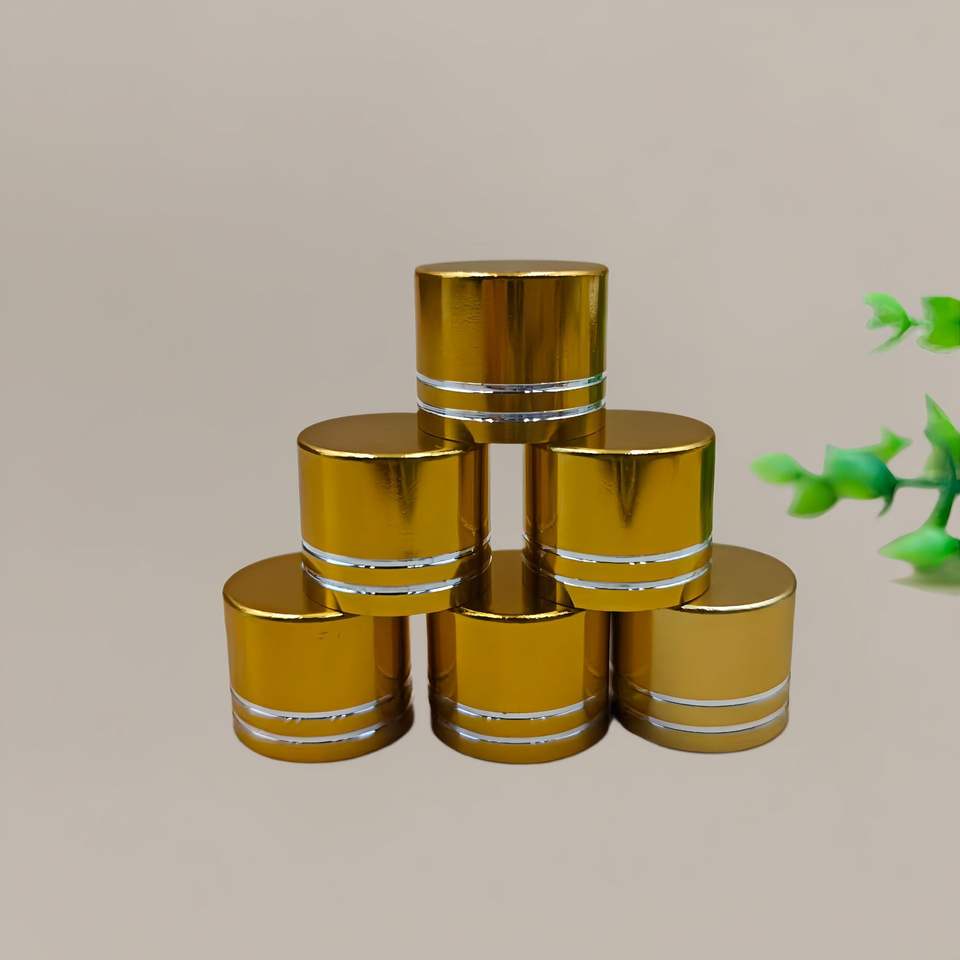 Tapas de Plástico Doradas de Doble Corte para Botellas de Crema y Aceites Esenciales, Varios Tamaños, Embalaje General, Logotipo Personalizado Disponible
