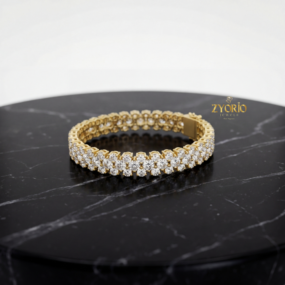 Cadena de Plata de Ley Chapada en Oro con Doble Hilera de Diamantes Cultivados en Laboratorio para Mujer, Elegante y Brillante, Ideal para Regalo de Boda o Fiesta