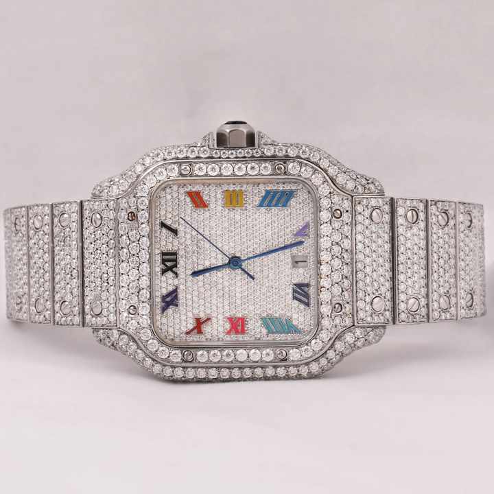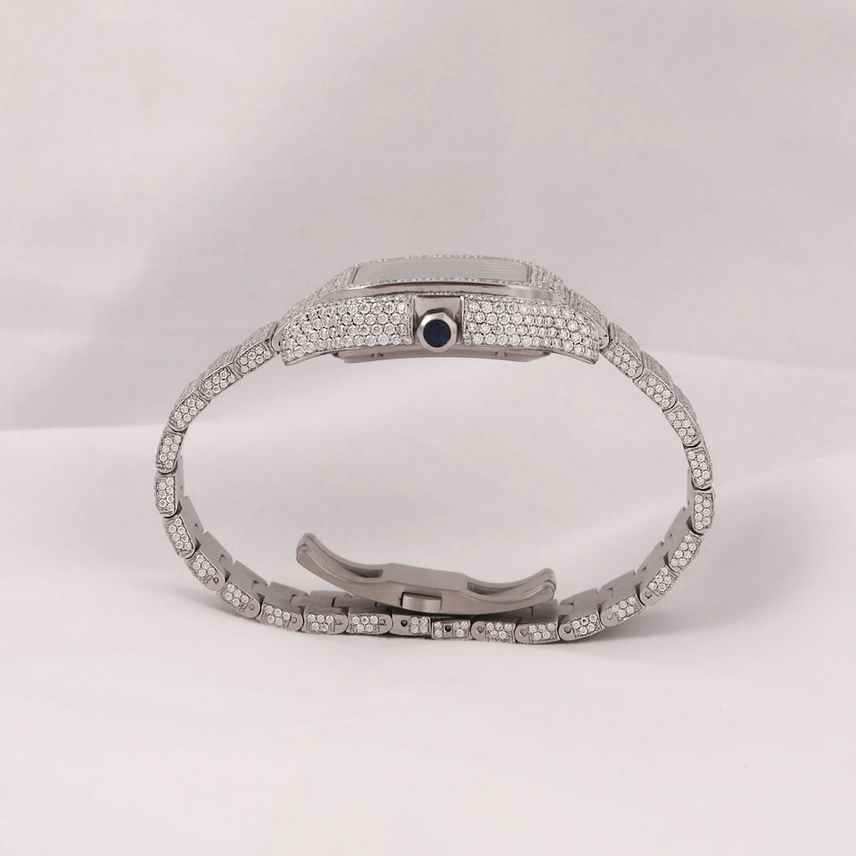 Gold Edition 25mm Square Two-Tone VVS Moissanite Diamond Totalmente Iced Luxury Cartoon Auto-Date Royal Blue Dial Reloj de cuarzo unisex