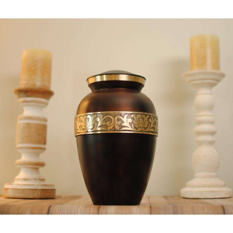 Nombre del producto:Latón adultos cremación Urna Milano rojo y oro mano grabado Floral Band