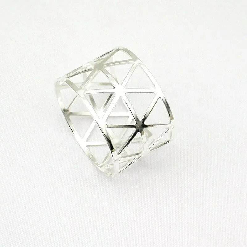 Anillo para Servilletas de Latón con Acabado Dorado, Diseño Geométrico Triangular, para Decoración de Mesa en Hoteles y Restaurantes