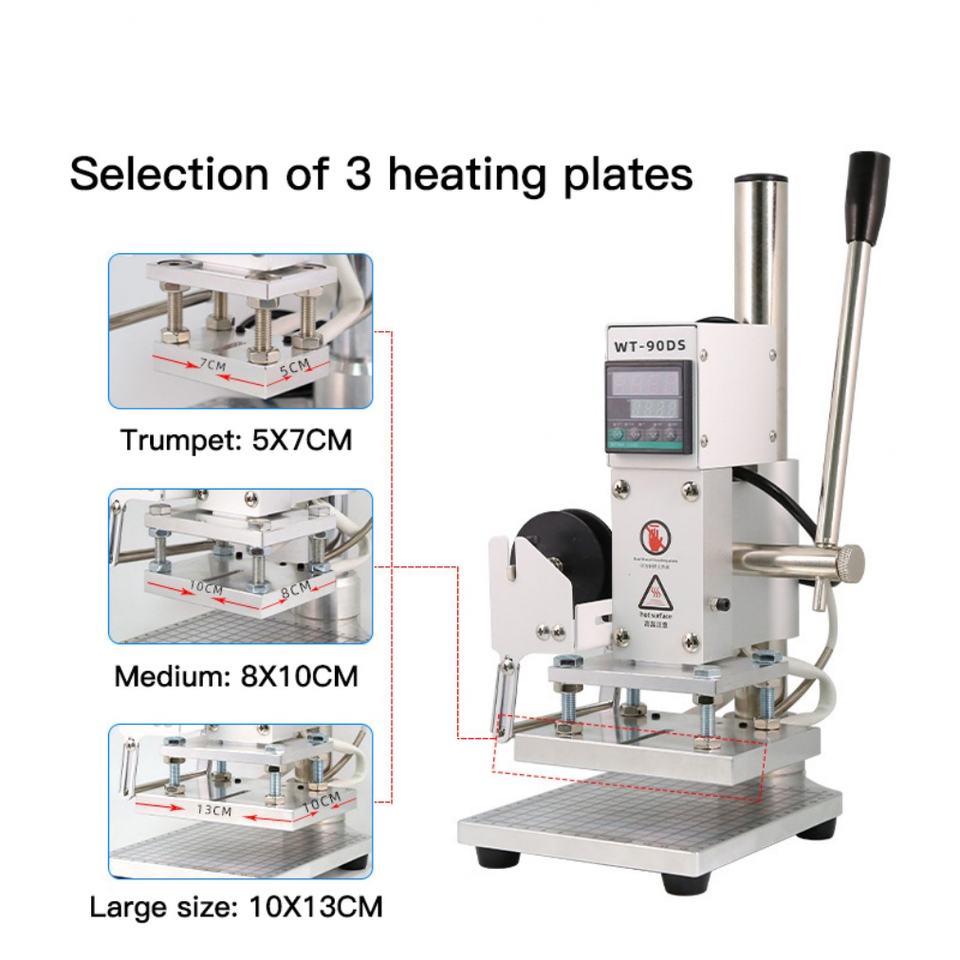 Máquina de Impresión con Lámina Dorada con Área de Estampado Personalizada de 5x7cm para Herramientas de Cuero, Máquina de Estampado en Caliente Manual
