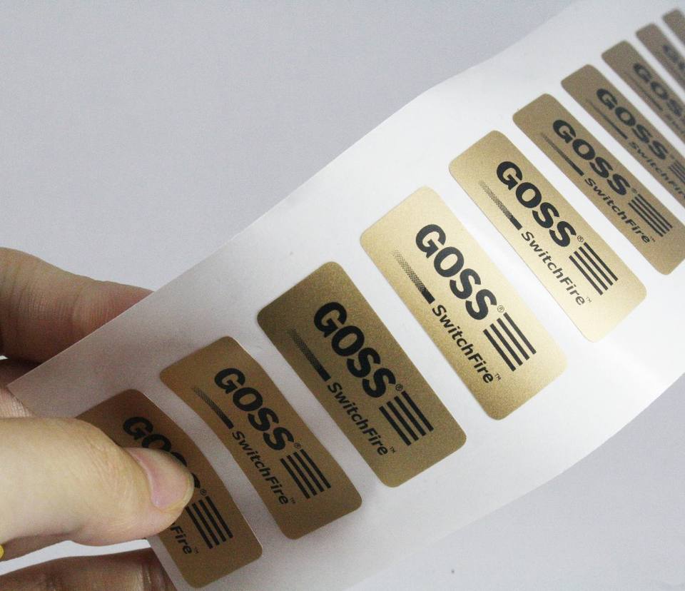 Pegatina de lámina dorada, pegatinas de etiqueta personalizadas con logotipo negro