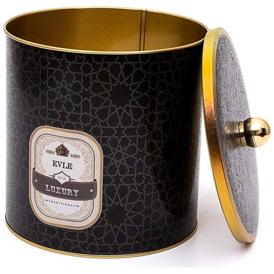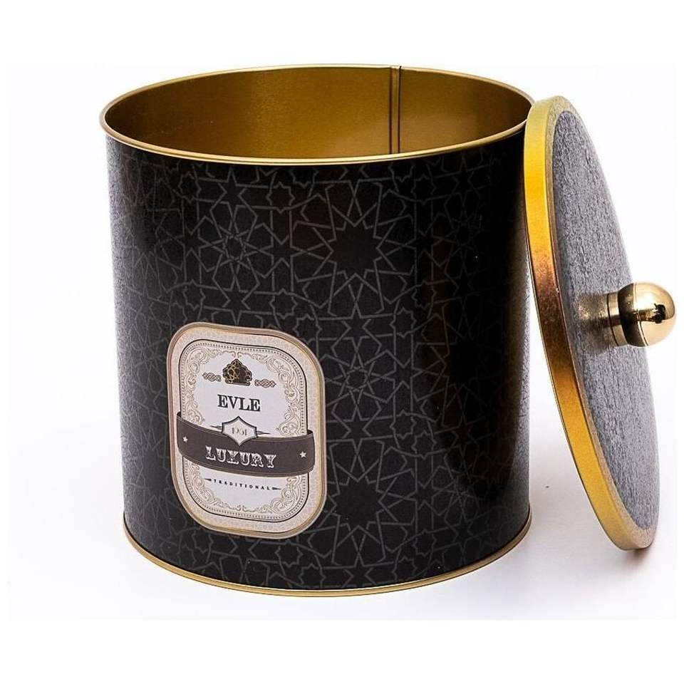 Mango de perilla de patrón geométrico dorado Recipiente redondo de metal de 175x180mm con fondo negro para almacenamiento y contenedor de alimentos
