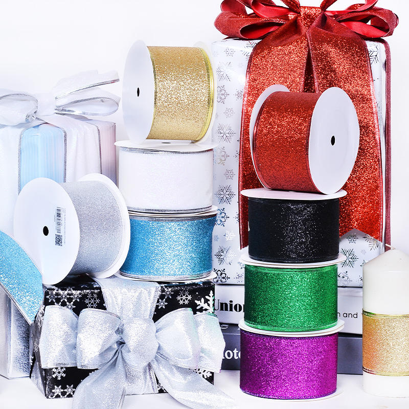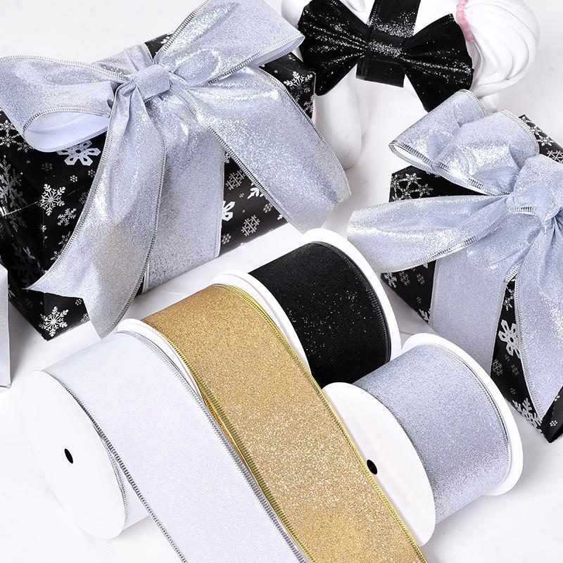 Cinta de borde con cable de brillo dorado, 2,5 pulgadas x 10 yardas para Navidad, decoración de la habitación del hogar, envoltura de regalo, corona de lazo para árbol
