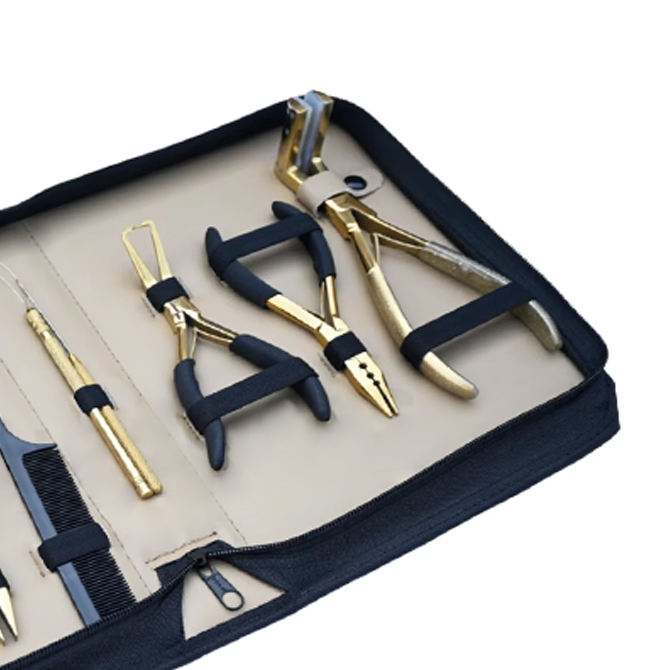 IMANS ENTERPRISES Alicates de Acero Inoxidable Dorados para Extensiones de Cabello, Kit de Herramientas para Instalación con Cinta Adhesiva, Modelo IE-HX-0150 para Profesionales