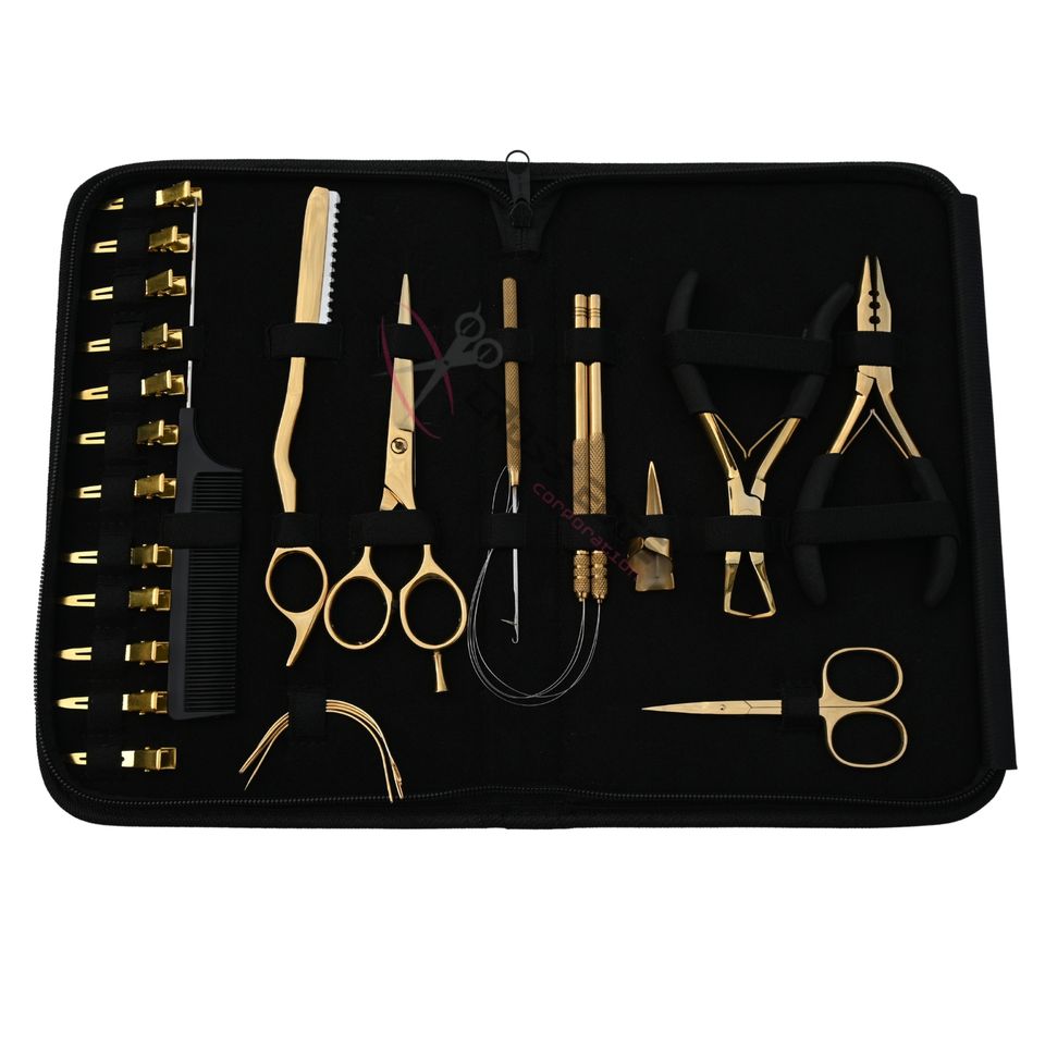 Kit de Herramientas para Extensiones de Cabello de Acero Inoxidable de Grado Quirúrgico Dorado