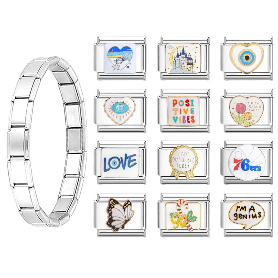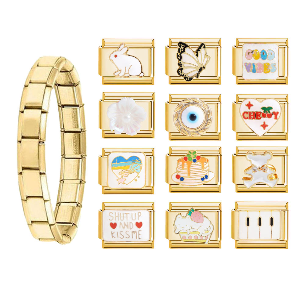 Pulsera de dijes entrelazados dorados con 12 dijes creativos, joyería de moda, accesorio DIY chapado en acero inoxidable para mujer