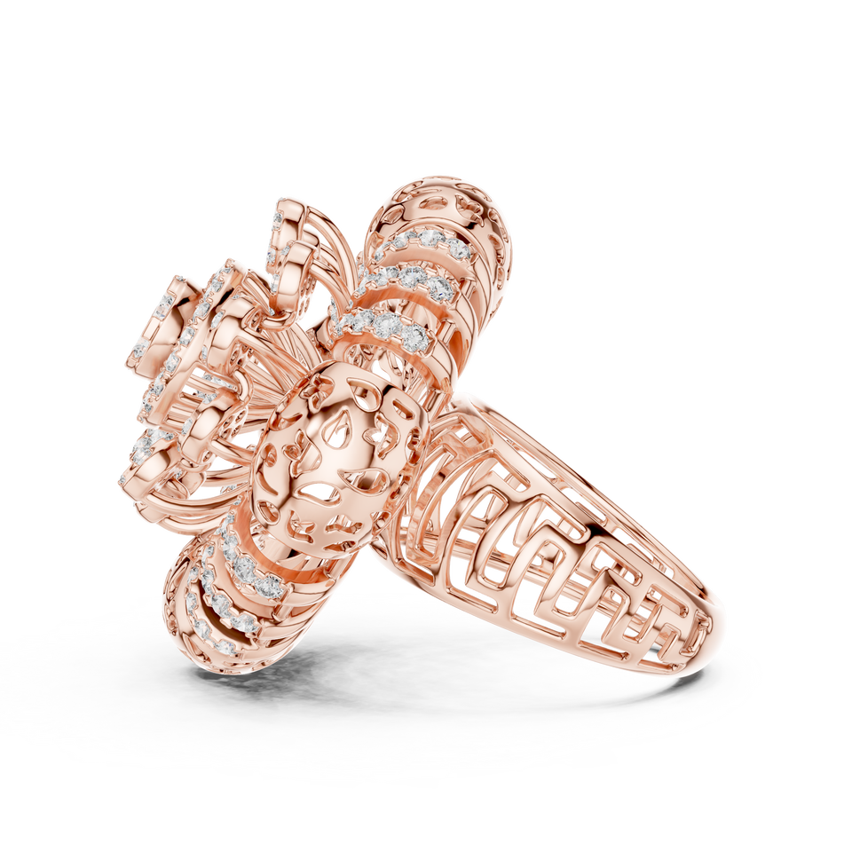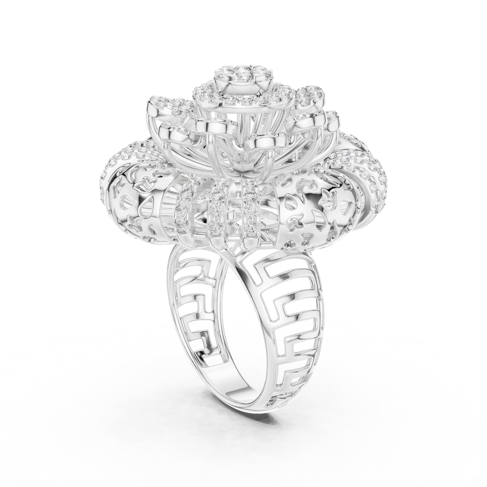 Anillo de cóctel llamativo con diamante cultivado en laboratorio, anillo de banda ancha de diseñador con diamantes pavé, joyería de lujo con diamantes de múltiples capas