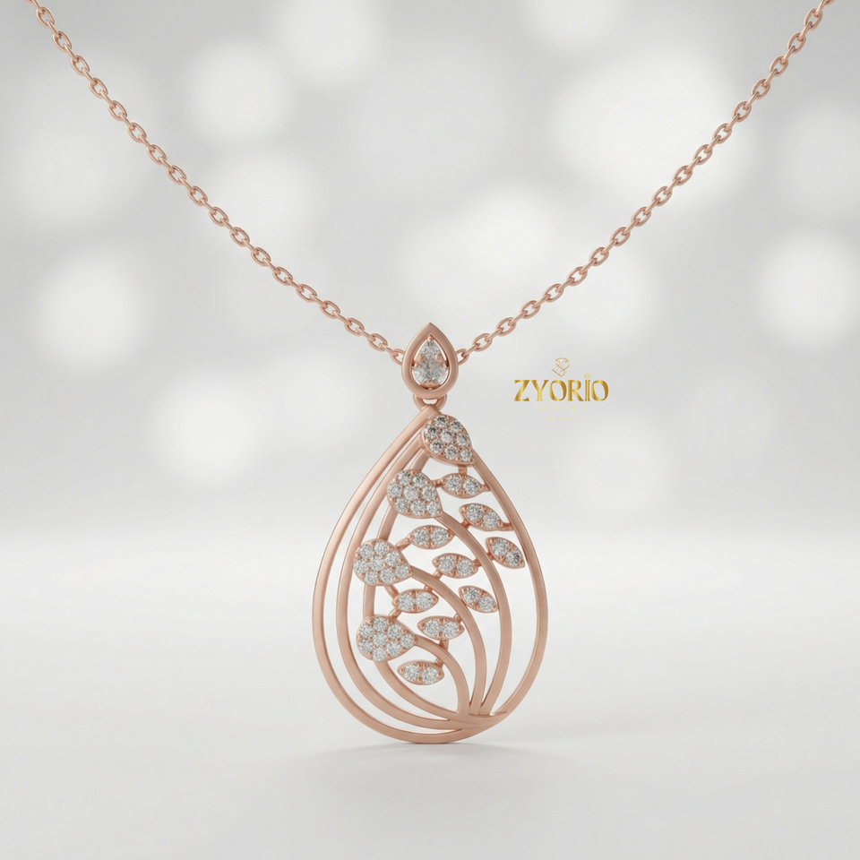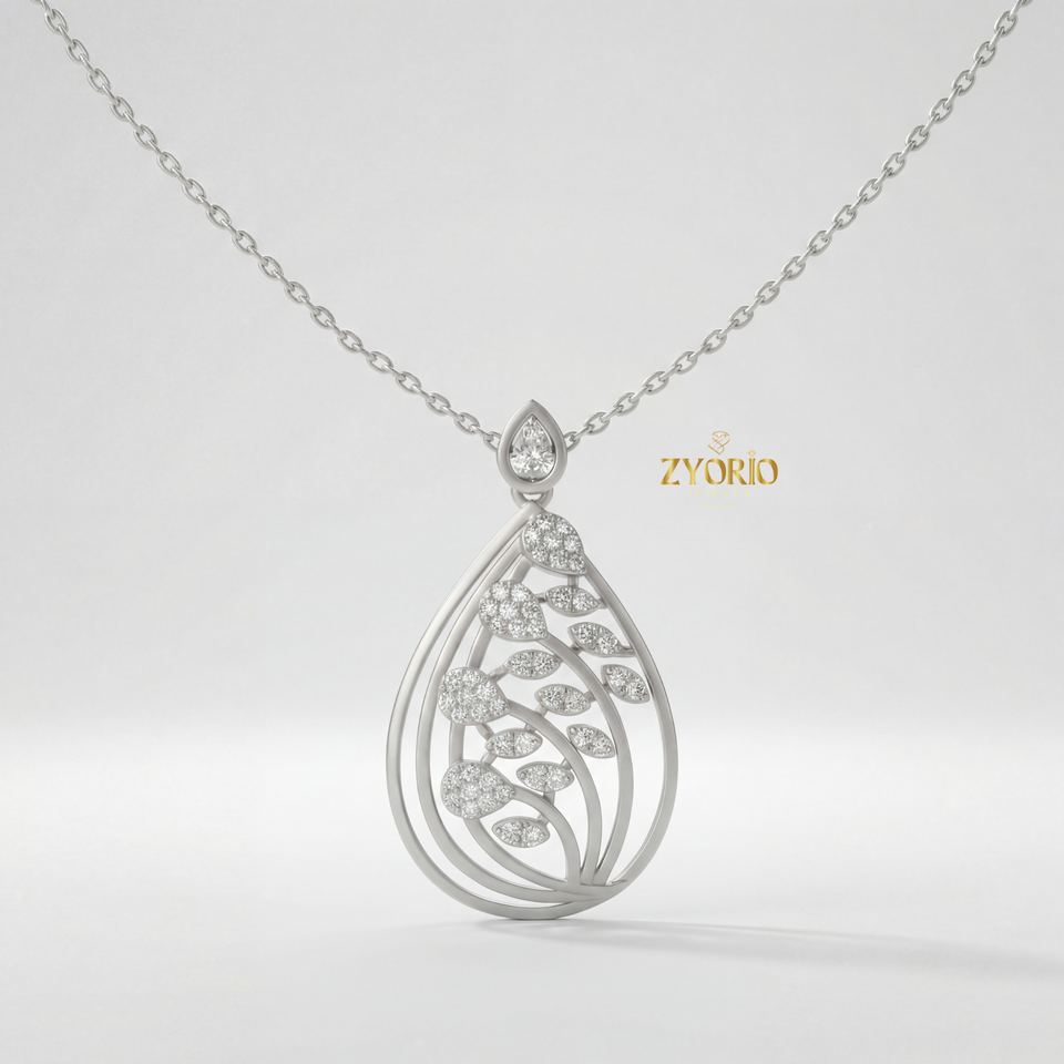 Collar con Colgante de Diamante en Forma de Lágrima con Hojas Doradas, Cadena de 14K/18K, Joyería de Lujo para Mujer, Ideal para Compromiso, Boda, Aniversario, Elegante y Natural