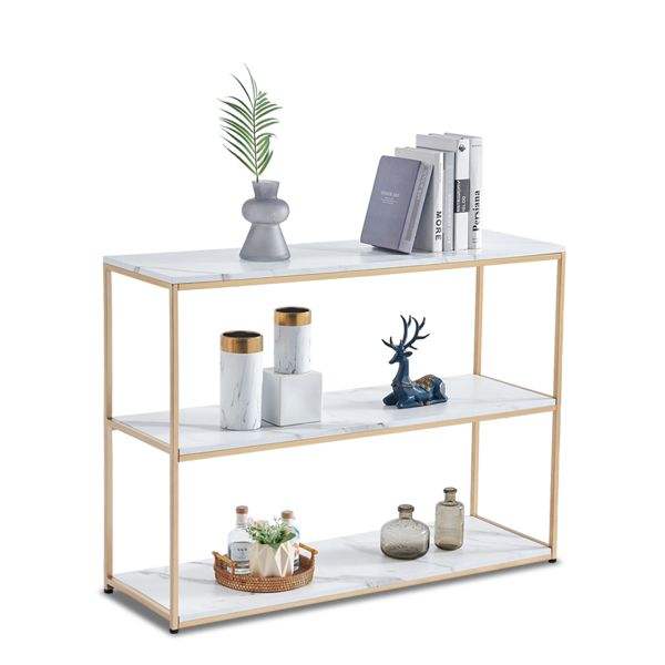 Mesa Consola de Entrada de MDF Dorado con Superficie de Mármol Sintético para Sala de Estar, Mueble Elegante para Recibidor o Entrada