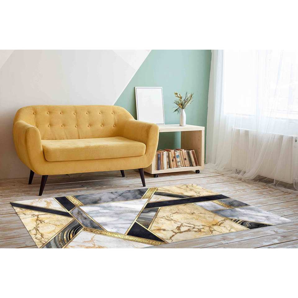 Alfombra Abstracta de Mármol Dorado: Gris y Amarillo, Decoración Moderna para el Hogar, Alfombra Impresa, Alfombra Delgada No Tejida