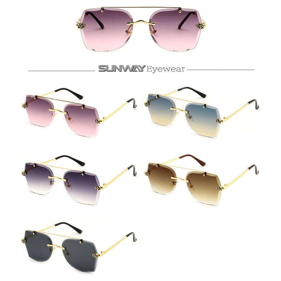 Gafas de Sol de Diseño con Montura Metálica Dorada y Lentes Degradadas, Protección UV400 de Lujo 2025, Gafas de Sol sin Montura de Marca de Moda para Hombre y Mujer