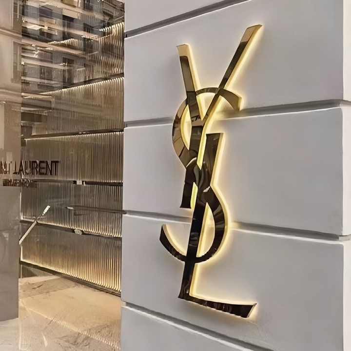 Letras de metal dorado, letreros de tienda de negocios, letras acrílicas 3D, letreros de logotipo de negocios LED, letreros electrónicos para exteriores
