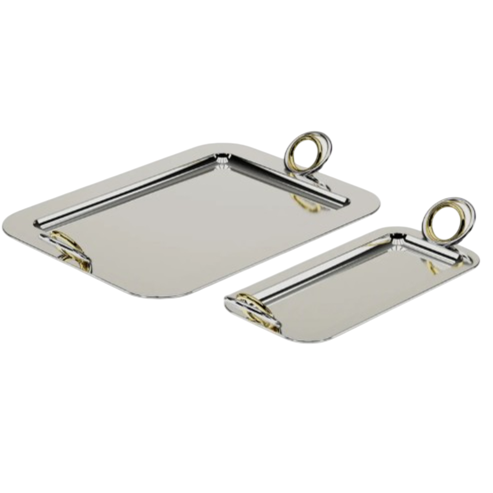 Bandeja Rectangular de Acero Inoxidable Dorada, Moderna y Decorativa, para Servir Desayuno y Comida, Ideal para el Hogar, Restaurantes y Fiestas