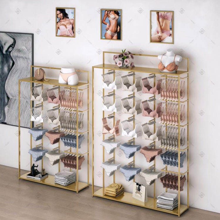 Soporte de exhibición de ropa interior de Metal dorado, equipo de estantería para sujetadores, muebles para tienda de lencería