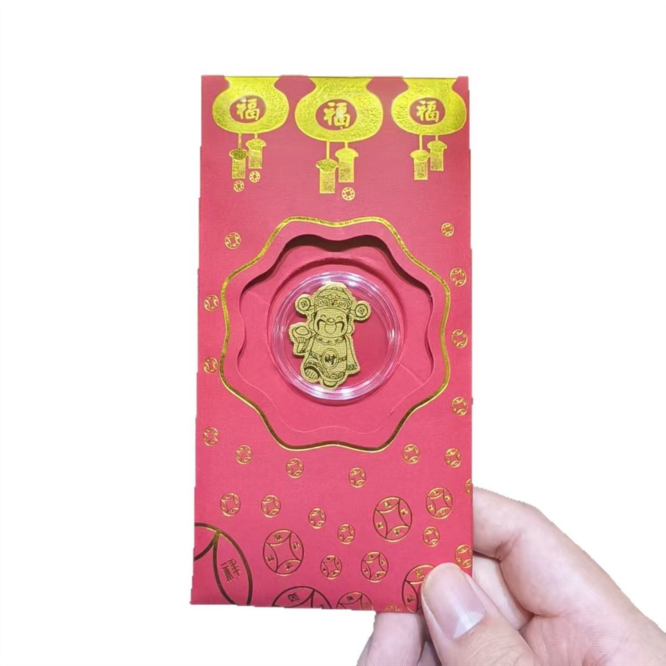 Las pegatinas doradas para teléfonos móviles pueden hacerte rico al instante. El Dios de la Riqueza Tiene Dinero y Gana una Fortuna Todos los Días. Regalos, Rojo