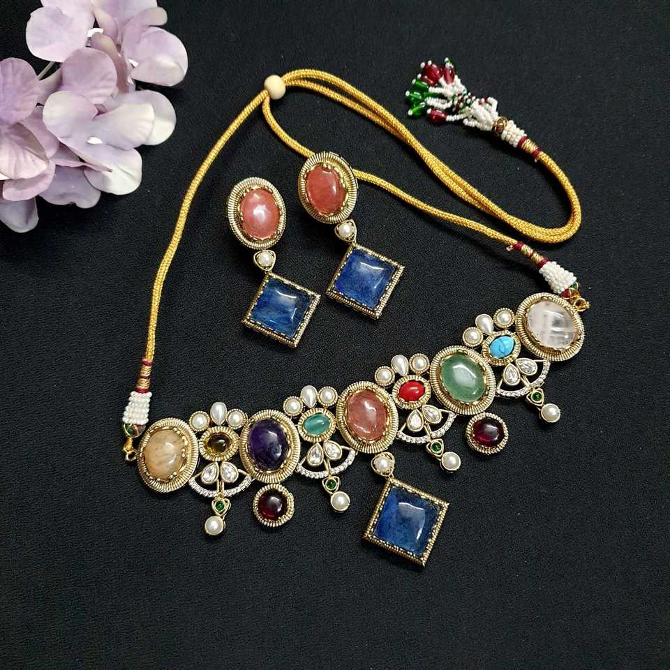 Collar Chokar Kundan Multicolor de Diseño Premium en Oro, Joyería Elegante para Novias y Bodas para Mujer