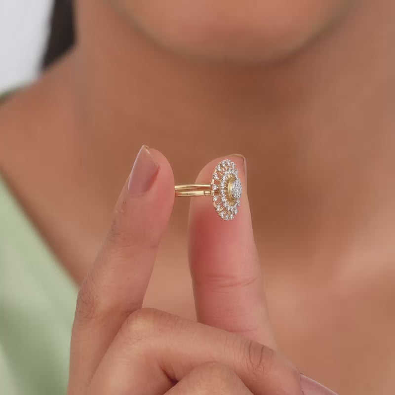 Gold Mystique Bloom Lab Grown Diamond Halo Ring Colección de anillos de diamantes elegantes