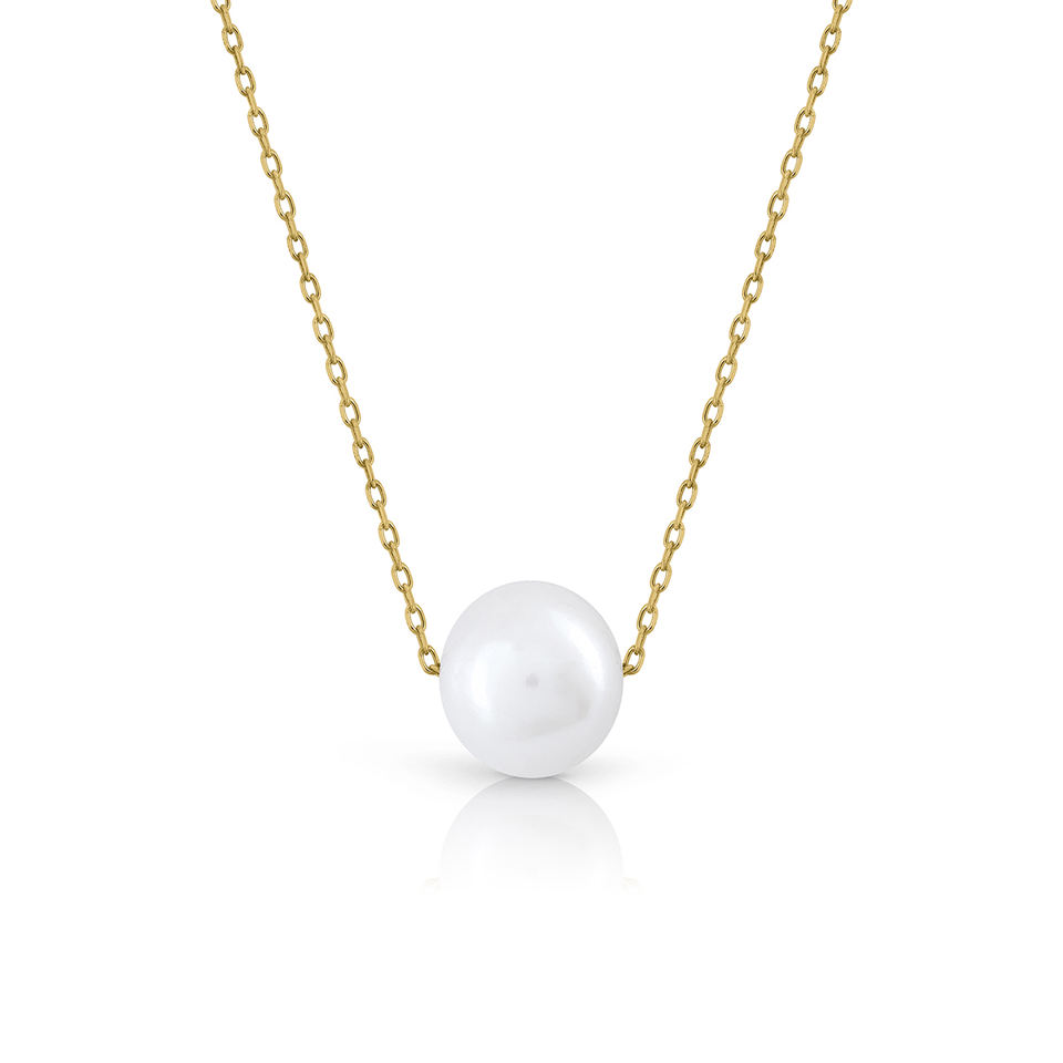 Collar de Oro con Perla Natural 40-42,5-45 cm Cadenas Finas Largas Producto Elegante y Lujoso
