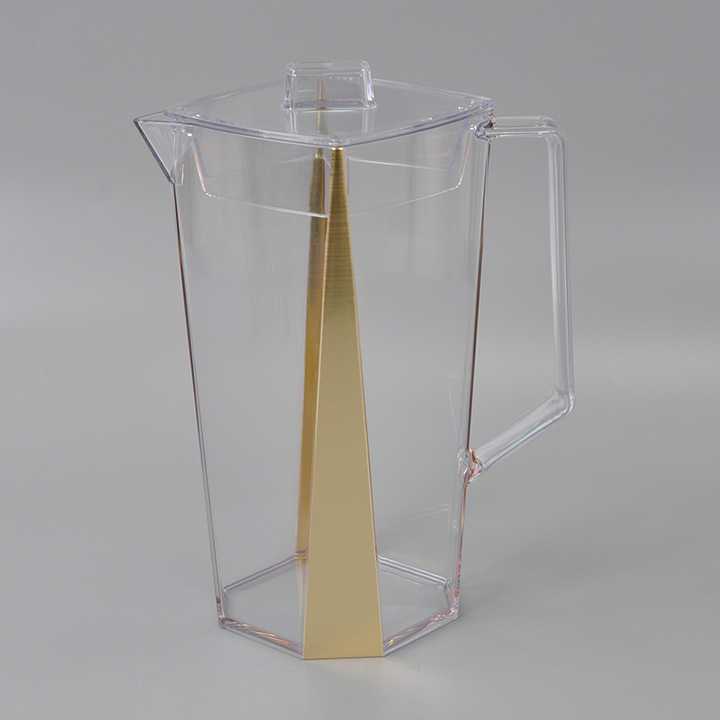 Jarra de agua en forma de octagonal dorada, con tapa y mango