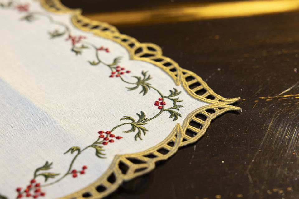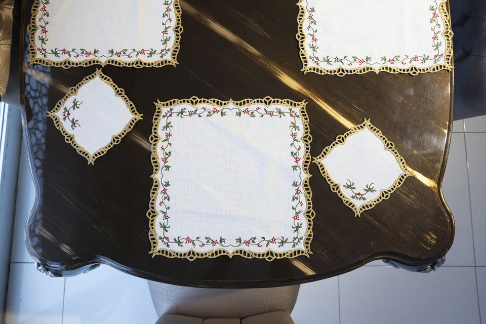 Servilleta Bordada Kokina Calada Dorada | 40x40 cm | Resistente a las Manchas