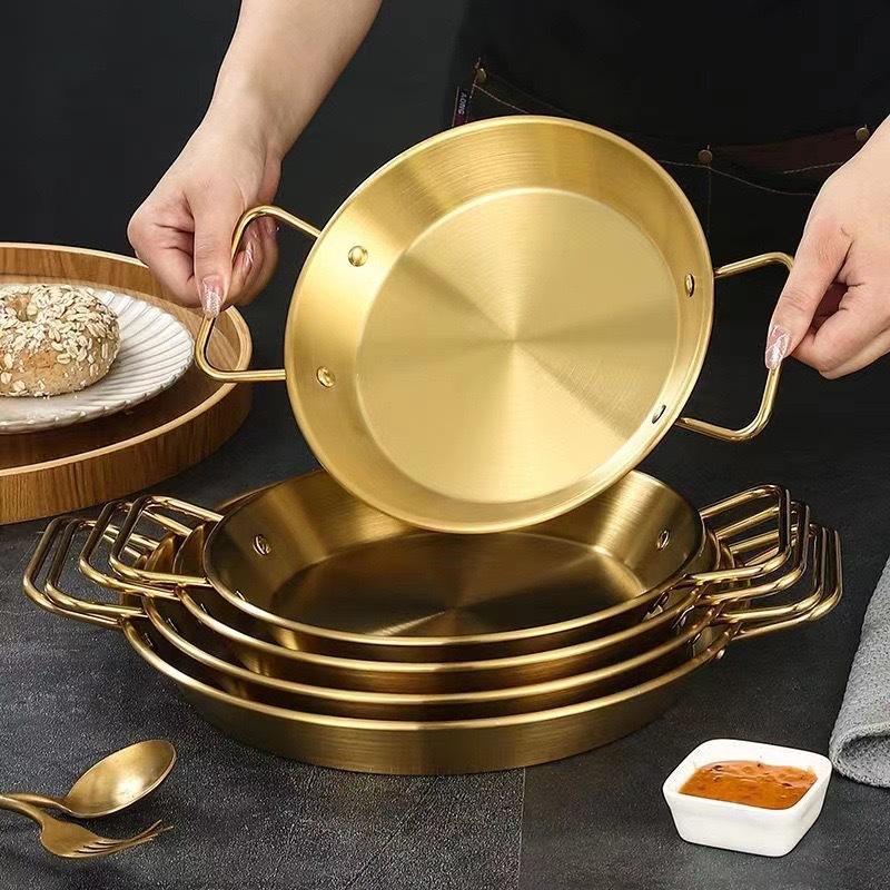 Paella dorada, olla de arroz y marisco español, plato de Pasta para ensalada, sartén para Wok, plato de pollo frito coreano, utensilios de cocina horneados con queso, olla caliente