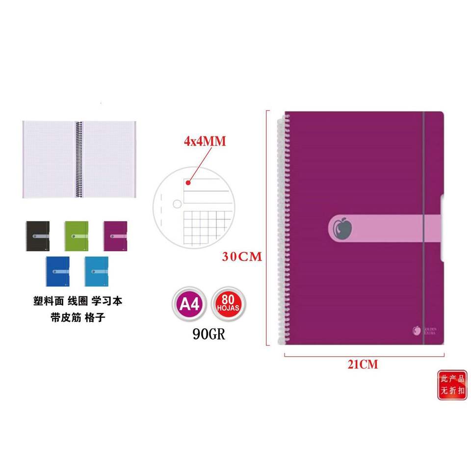 Cuaderno de Plástico Dorado con Cubierta de Cuero Sintético, 80 Hojas, 90gr, Cuadrículas, Tamaños B6, B5, A6, Bonito, Térmico, Hojas Sueltas, para Uso Escolar
