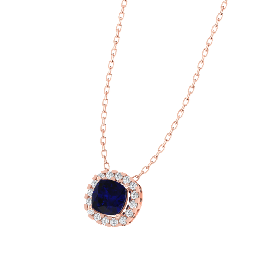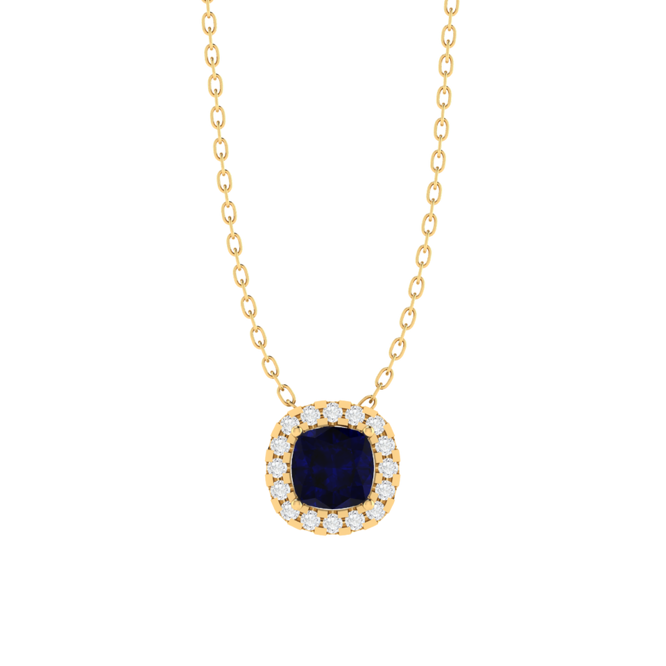 Colgante de Plata de Ley Chapado en Oro con Cadena de 18 Pulgadas, Gema de Zafiro Talla Esmeralda con Zafiro Talla Cojín y Circonita de 1.2 g