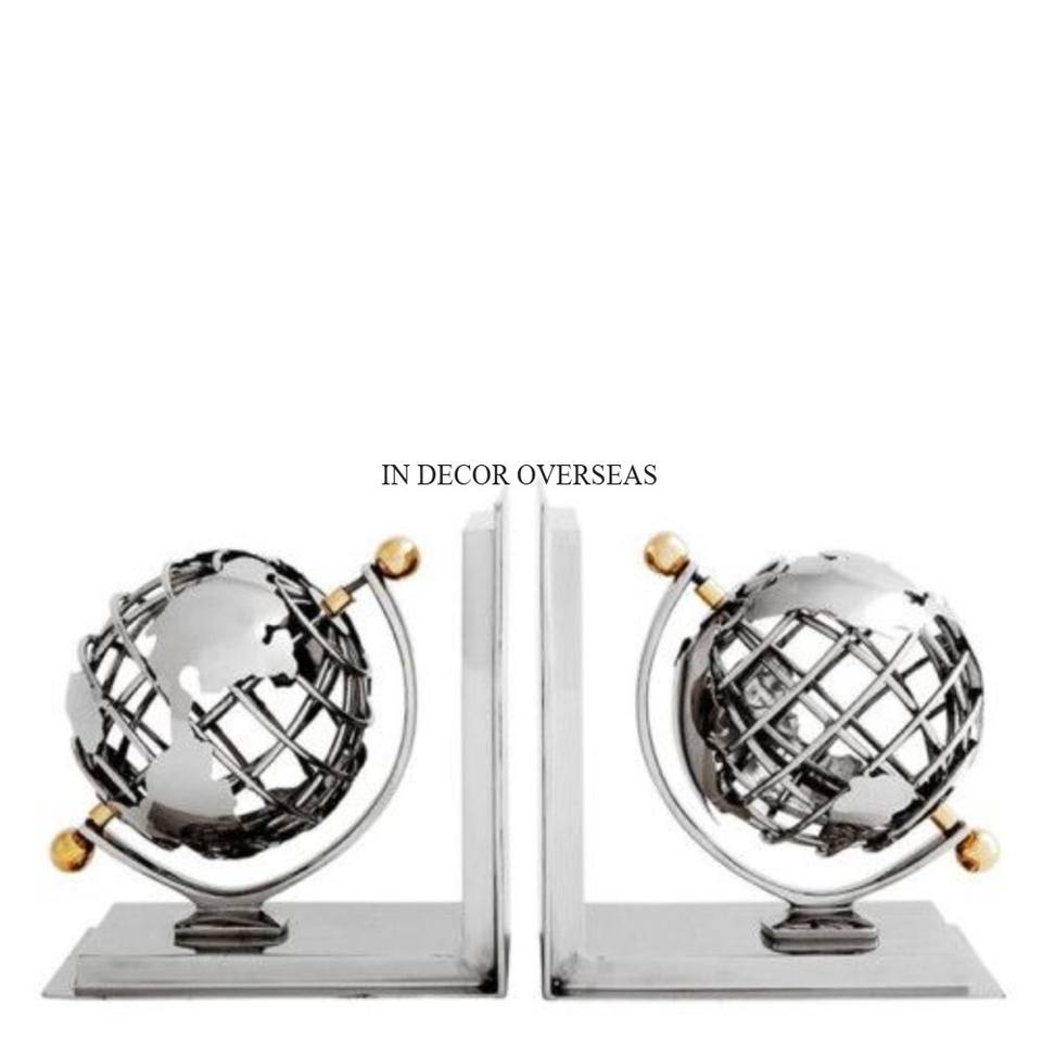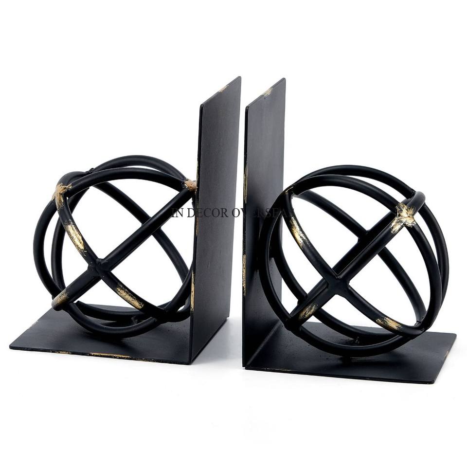 Sujetalibros de diseñador de globos con estilo únicos recubiertos de polvo de color negro y chapado en oro de proveedor indio a precios al por mayor