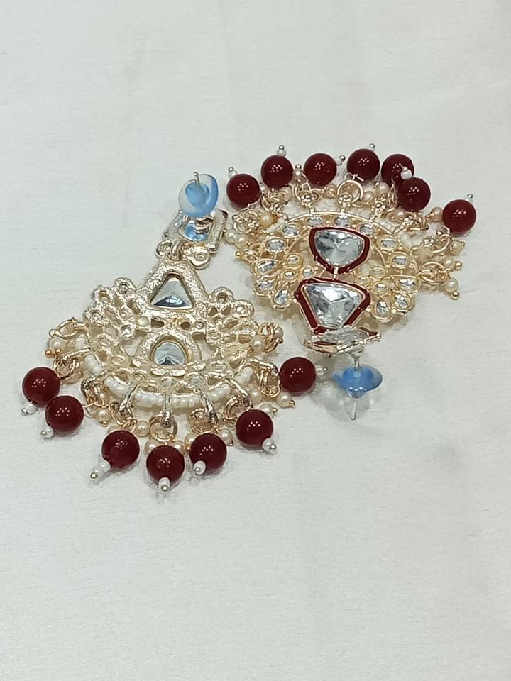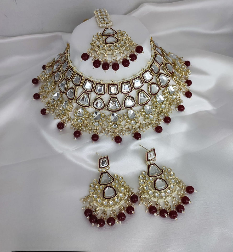 Nombre de los Productos:Elegante Conjunto de Collar y Pendientes de Kundan y Perlas Bañados en Oro
