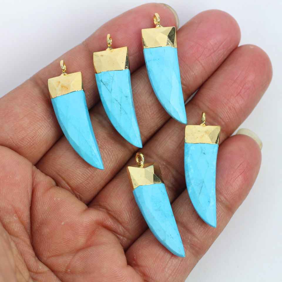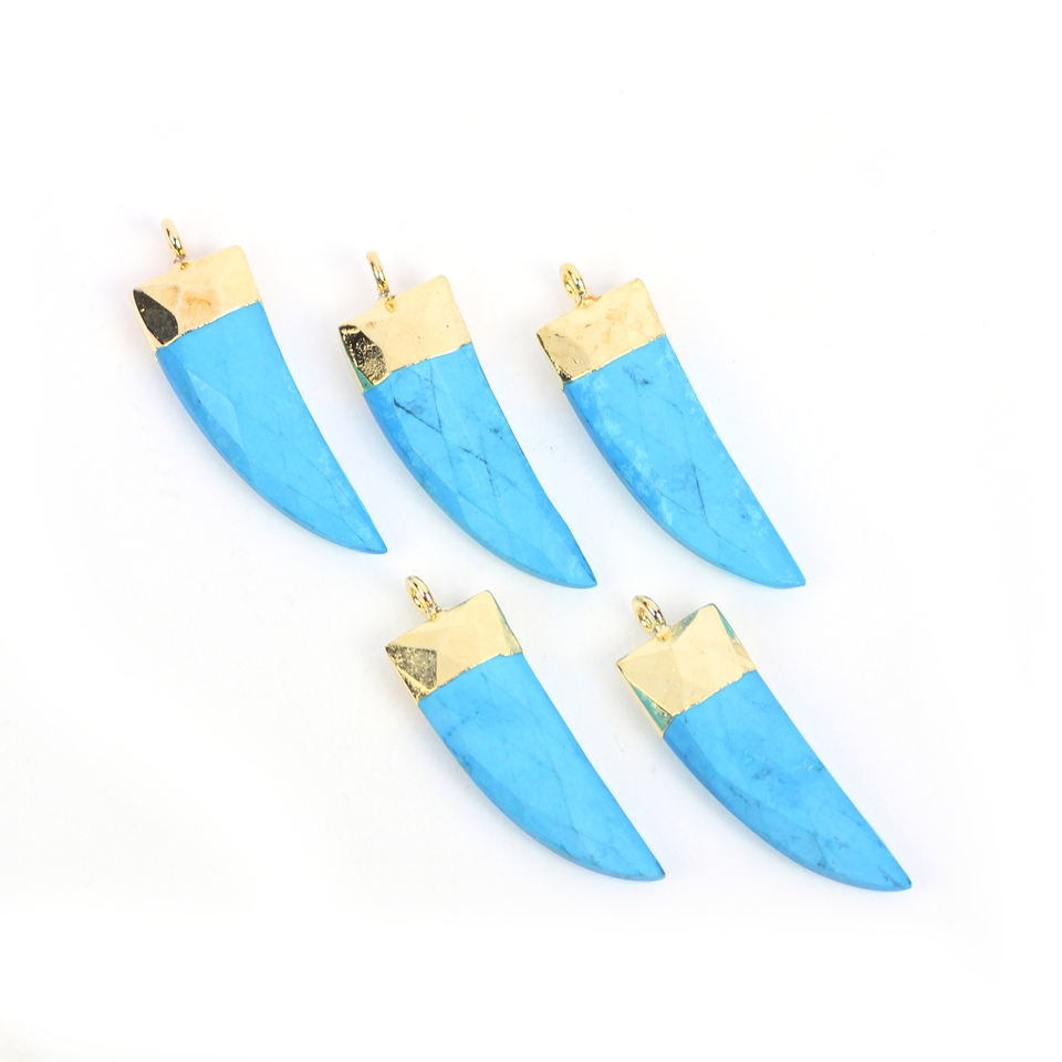 Colgante plano de colmillo de gota de turquesa de howlita facetada chapada en oro forma de punta de diente de arco iris con dijes de piedras preciosas galvanizadas