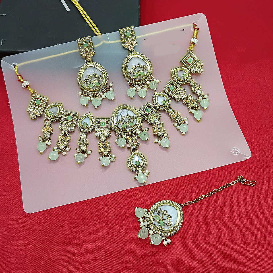 Conjunto de joyería fina chapada en oro con piedra de cristal y collar de cuentas 10573979