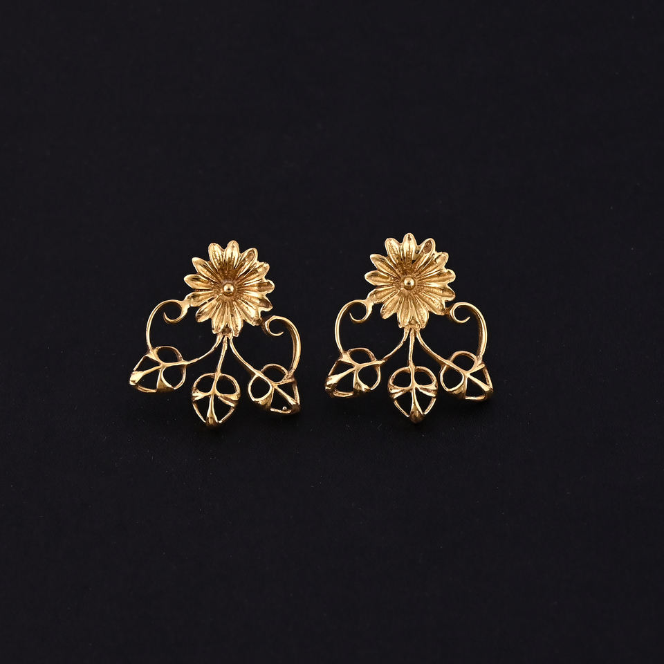 Imagen:Pendientes de flores chapados en oro con gotas curvadas