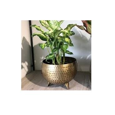 Macetas de flores chapadas en oro Venta al por mayor Maceta de jardín de decoración de diferentes tamaños con soporte negro de hierro forjado a precio mayorista