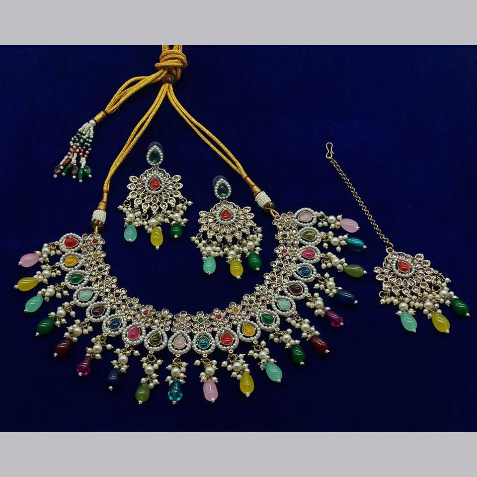 Conjunto de collar de joyería de moda de piedra Kundan chapado en oro 10581253ML