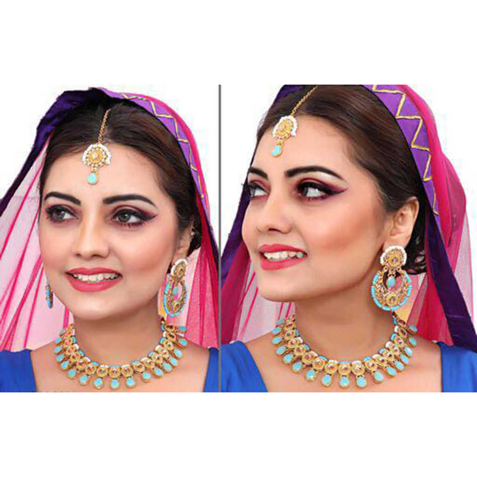 Conjunto de collar de joyería de moda de piedra Kundan chapado en oro 10581028SBL
