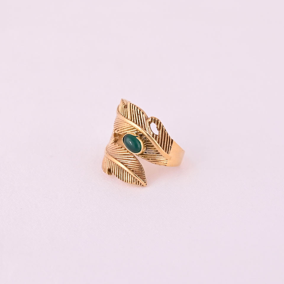 Imagen:Anillo de banda de hoja chapada en oro con piedra de Calcedonia verde para mujer