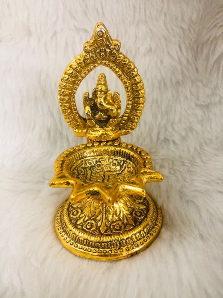 Lámpara de Aceite de Esmalte Duro Hecha a Mano, Ecológica, con Diseño de Ganesh en Metal Chapado en Oro, Decoración para el Hogar, Recuerdos para Fiestas de Pooja y Diwali