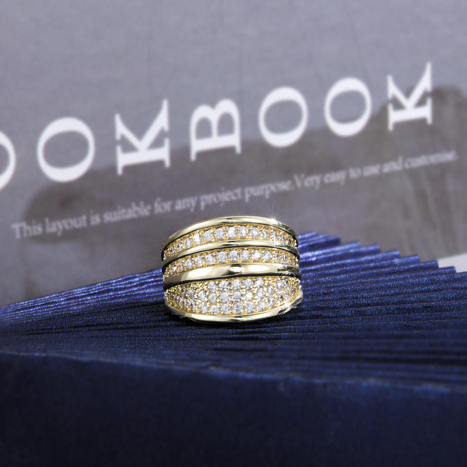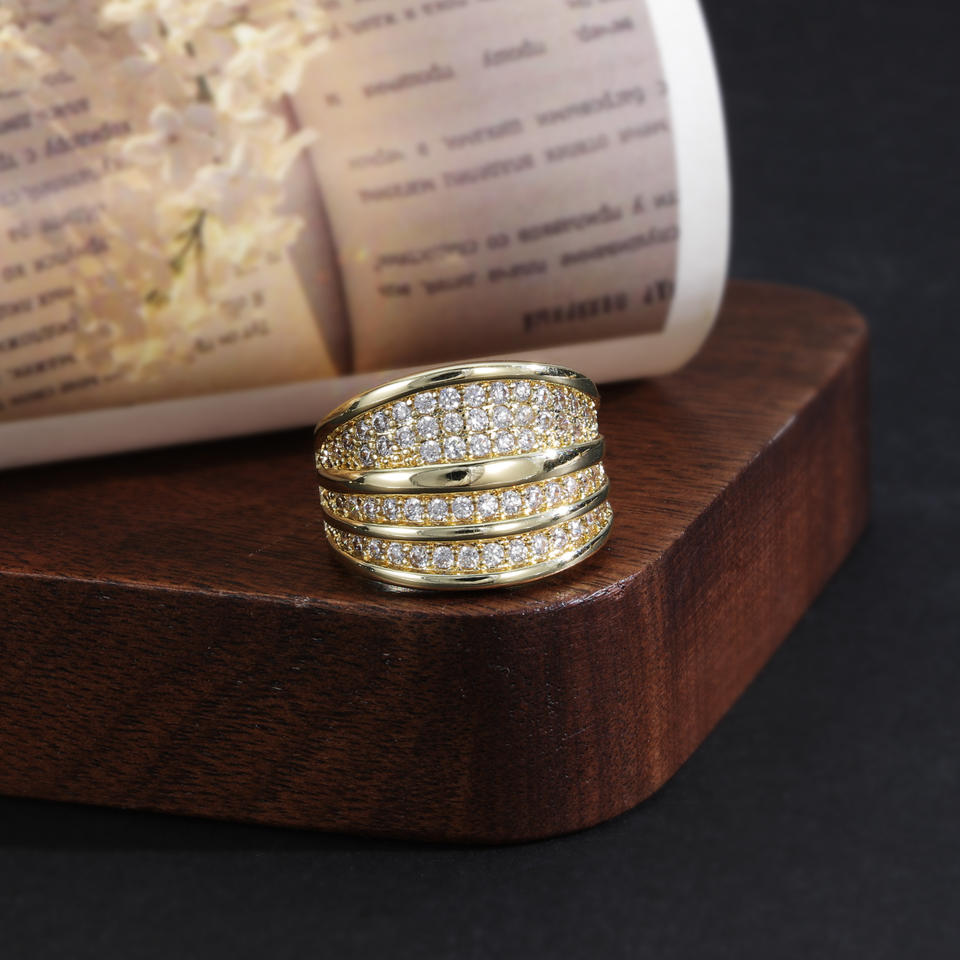 Anillo Apilable Multicapa Chapado en Oro | Anillo de banda ancha con circonita cúbica pavimentada | Anillo de Lujo para Mujer
