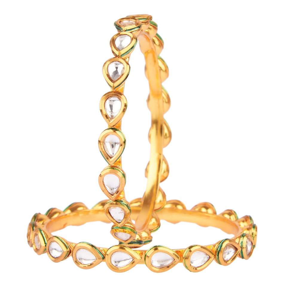 Chapado en oro pera corte Kundan cristal pulsera brazalete conjunto joyería (2 piezas) boda para mujer