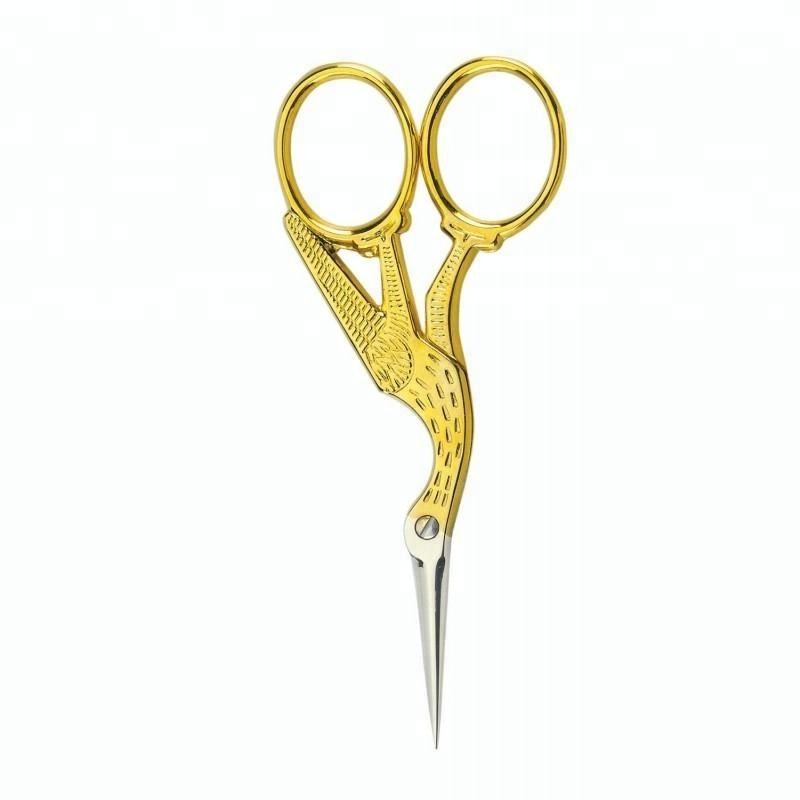 Tijeras de Bordado para Cutículas de Acero Inoxidable Chapadas en Oro para Diestros - Estilo Grulla Duradero