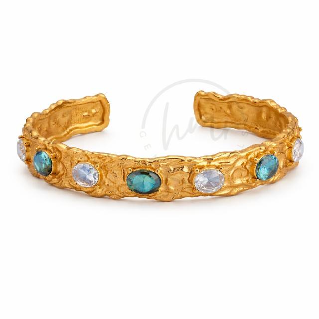 Brazalete Abierto Ajustable Chapado en Oro con Labradorita y Piedra Lunar, Joyería Artesanal con Gemas