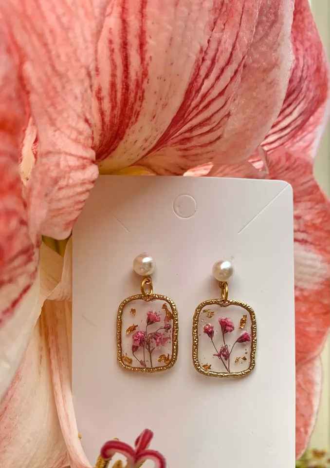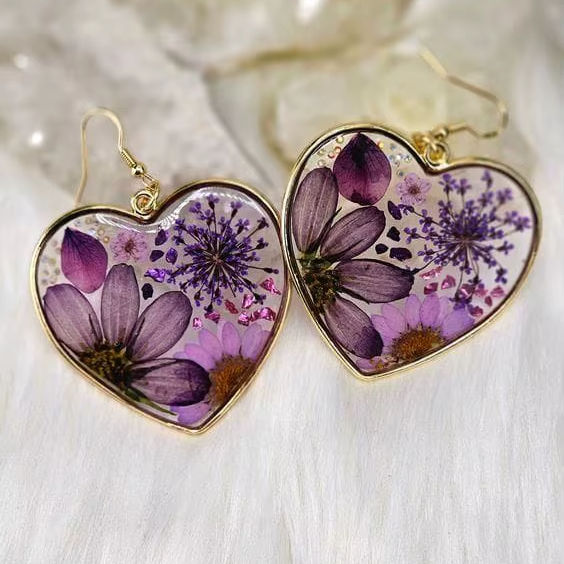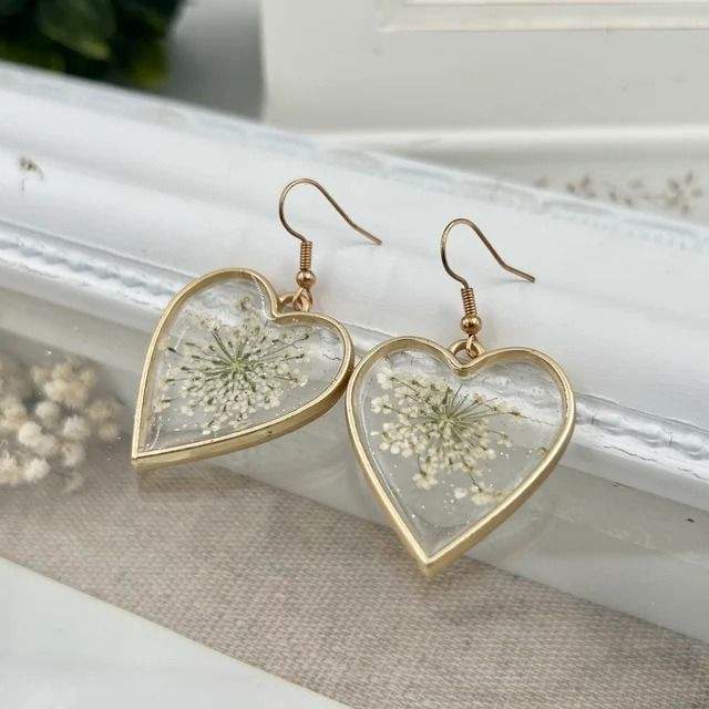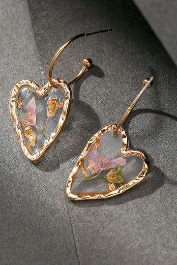 Pendientes colgantes de boda Art Deco de Camelia seca de resina transparente de latón flor creativa de moda para joyería de corazón para mujer