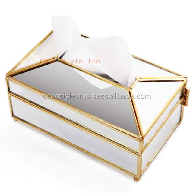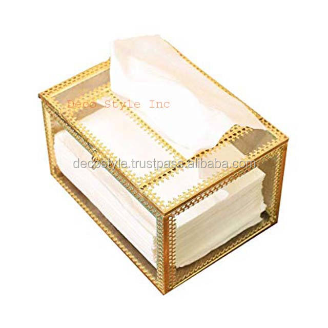 Caja de pañuelos dorada con forma de cabaña