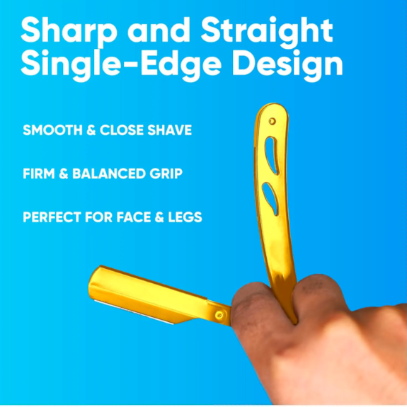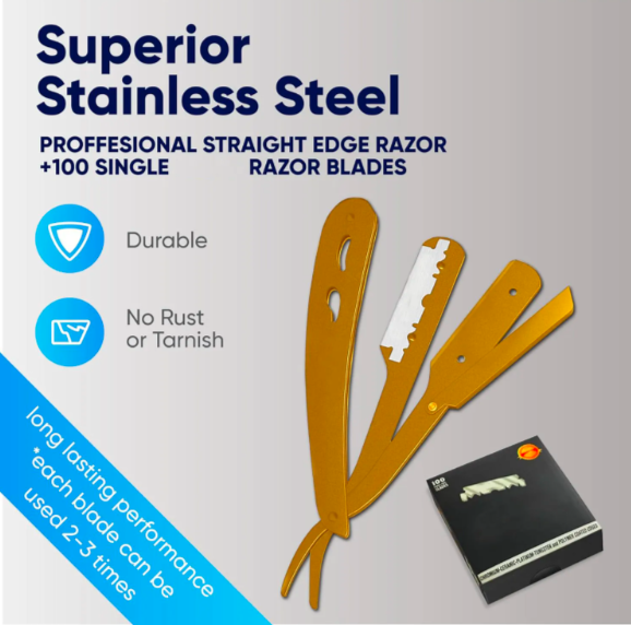 Kit de maquinilla de afeitar de peluquero de acero inoxidable dorado profesional ANAAIF con hoja desechable de borde recto Para una depilación corporal conveniente