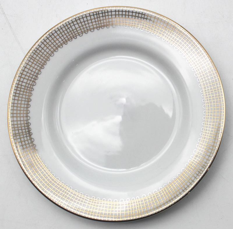 Juego de platos y tazas de porcelana irrompibles, juego de vajilla de cerámica con calcomanía de borde dorado para hoteles árabes